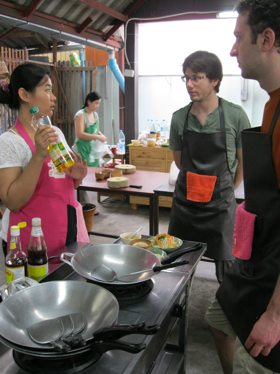 After we made a few dishes, everyone sat together at the table and ate and shared lunch. It was all highly delicious. Jenny and I signed up for a full day of instruction, as did a French guy named Alex. Everyone else only had a half day so they left after lunch while we got back into the kitchen. Since there were only three of us left it was effectively a private lesson. It was a lot of work but it paid off! We paid 900 Baht each for the day, which is about $30 USD, and we walked away with more food than we could possibly eat. We even got an ingredient book and cookbook.