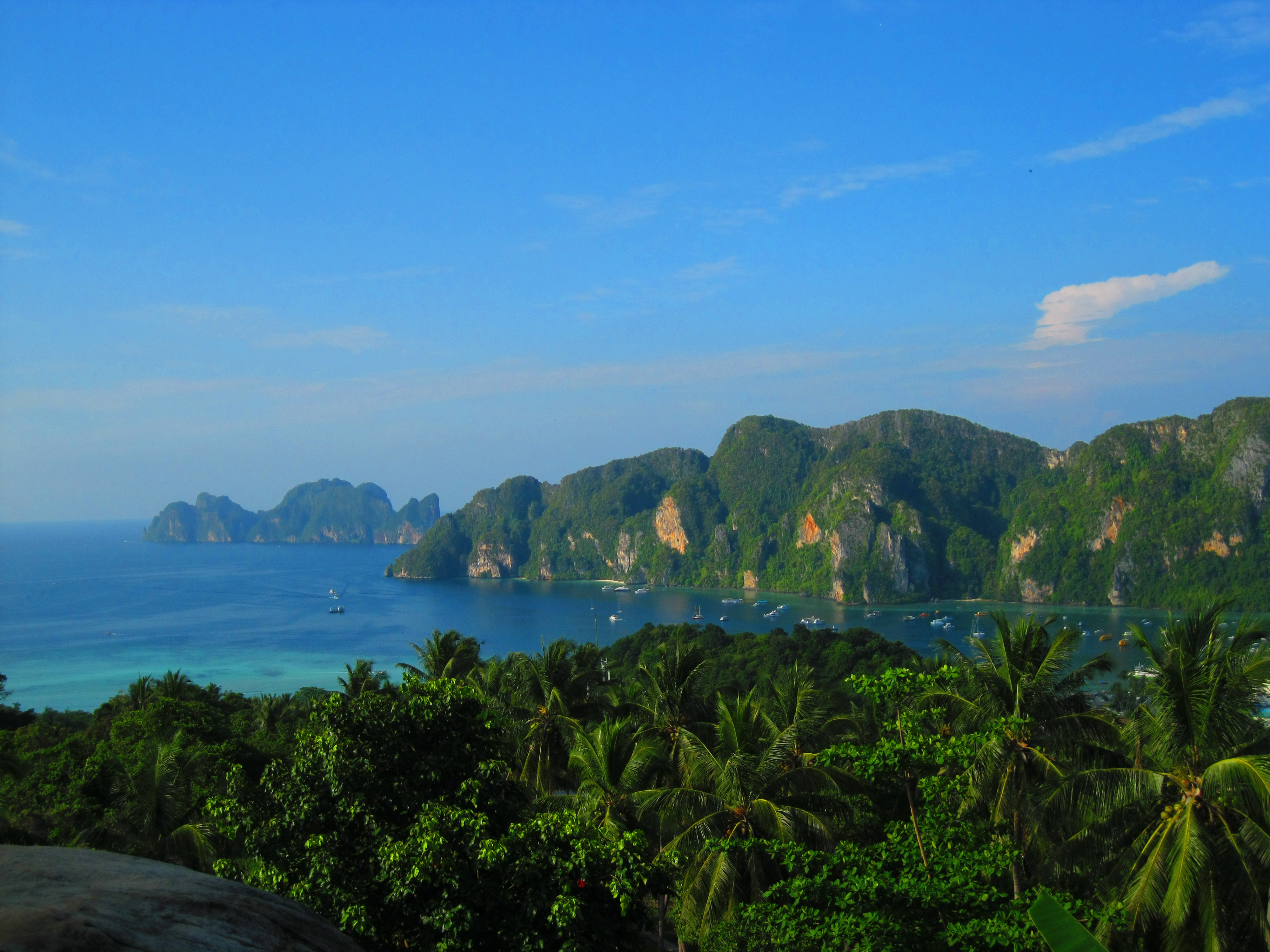 We took two ferries from Ko Jum to get to the island of Ko Phi Phi, which became very famous in popular after the 1999 release of Leonardo DiCaprio’s movie The Beach. Ko Phi Phi was also severely damaged during the 2004 tsunami. We were a bit hesitant to go, as what we’d read and heard made it sound like it would be an island packed full of partying bros. In fact, it was. Despite Ko Phi Phi’s party atmosphere, there are some amazingly gorgeous things to see and do around the island.