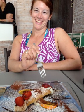 Alas, we only found Il Pirata on our last evening in Vernazza. Still we managed to make three trips to the restaurant: once for dinner, once for un cannolo (that’s the singular of cannoli), and once for breakfast.
