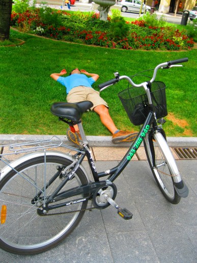 Lastly, in San Sebastian (northern Spain, near France), we cruised around on bikes – beating the heat with a self-made breeze and enjoying San Sebastian’s excellent bike facilities – cycle tracks and bicycle stop lights!