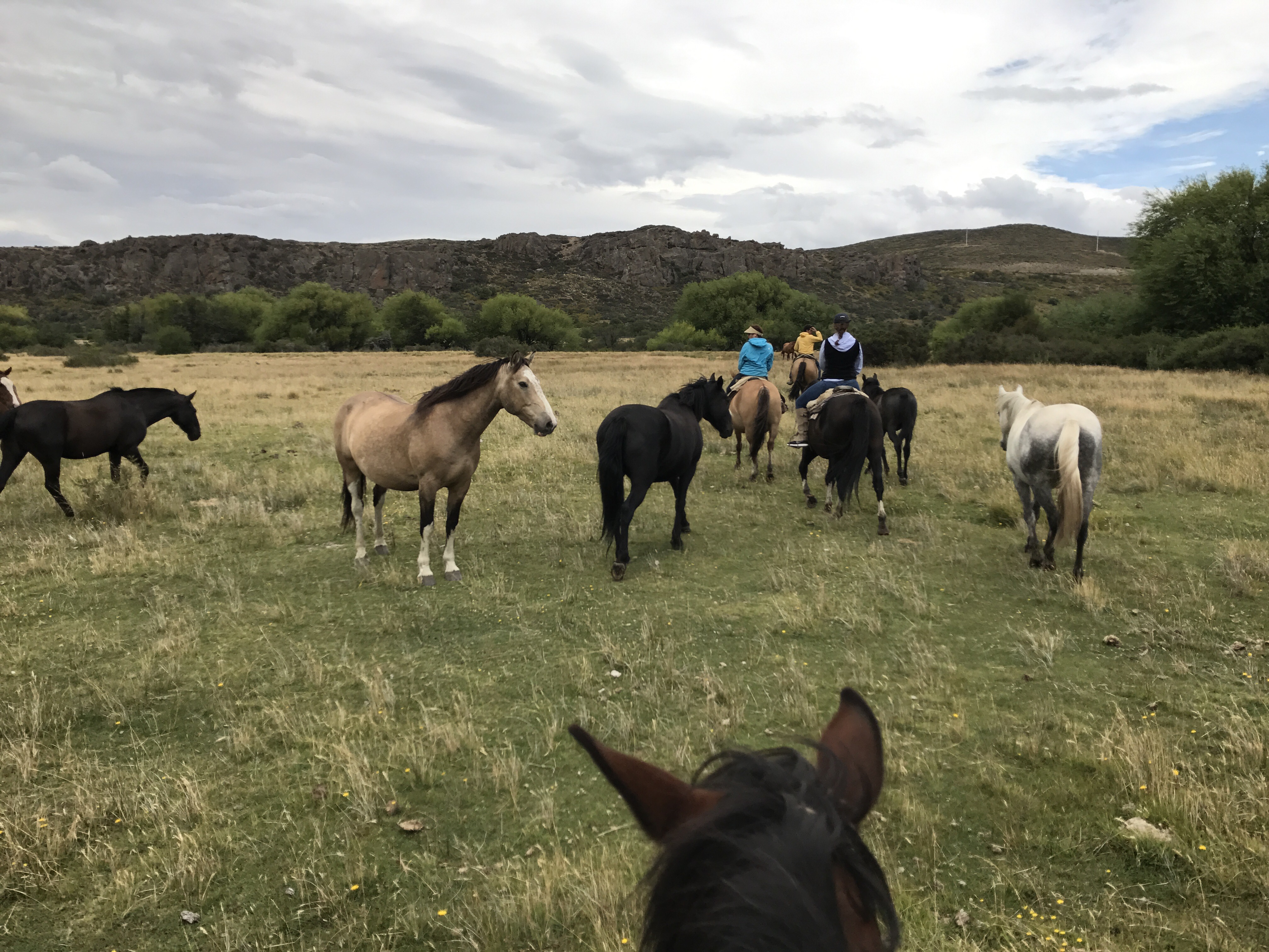 The first order of the day was to round up horses for us to ride. On most ranches that would involve walking out to the stables, but not here. Carol’s twenty four horses roam free over a huge estancia (ranch).