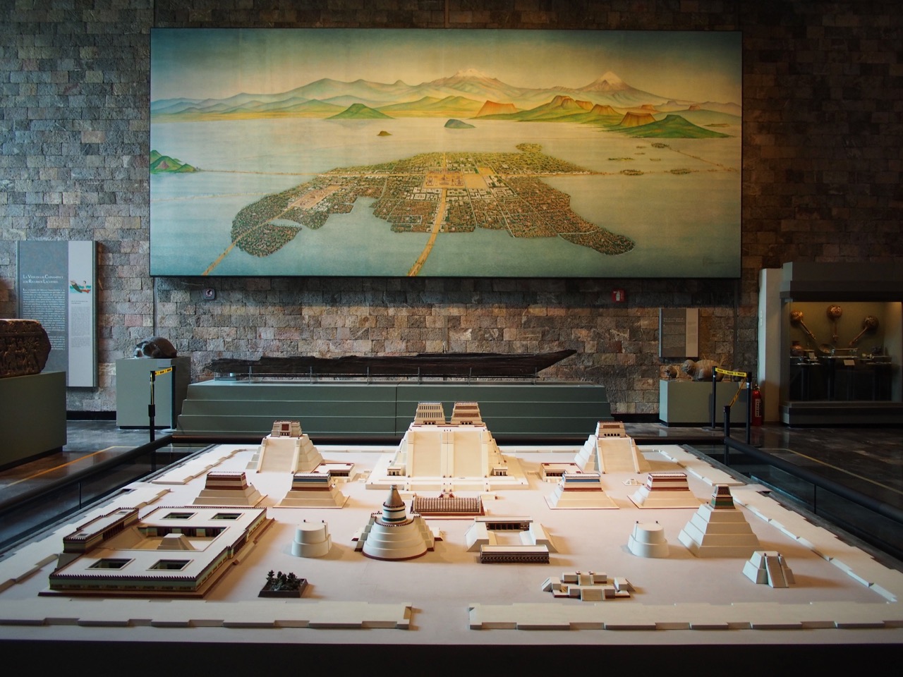 Mexico City sits on the site of Tenochtitlán, which was the capitol of the Aztec empire. Back then the city was actually an island in an enormous lake. The Aztecs built roads and aqueducts that led to the island. The remains of all those things are still visible in the city and there are ruins underneath many of the buildings!