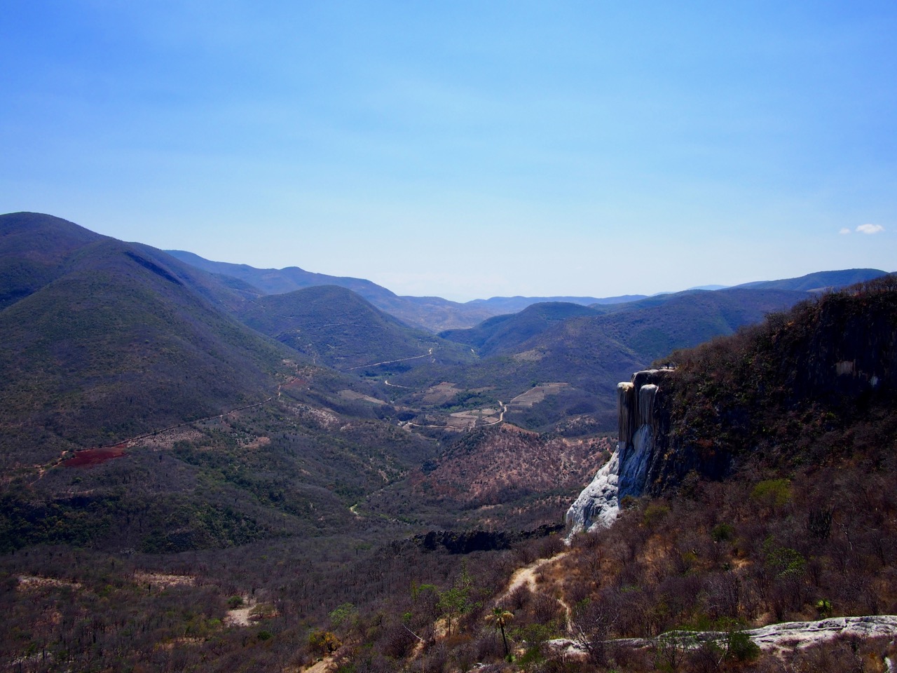 Upon arrival at the site, we paid our $25MXN (about $1.15USD) and walked through the usual tourist entrance – bathrooms you pay for and a street full of vendors selling local crafts, foods, and drink. We then took a short trail to arrive at the pools and breathtaking view of the mountains and valley.