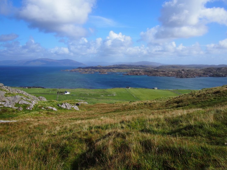 Our guidebook (Rick Steves!) said to walk 10 minutes past the abbey visitor center to climb a steep hill (“Dun-I”) to a nice look out. We had picked up some picnic provisions and thought we’d have a nice hike up to a scenic place to eat lunch. We wandered down the (only) street but didn’t see any trails. We finally felt like we’d walked at least 10 minutes and could see what appeared to be the biggest hill on the island.